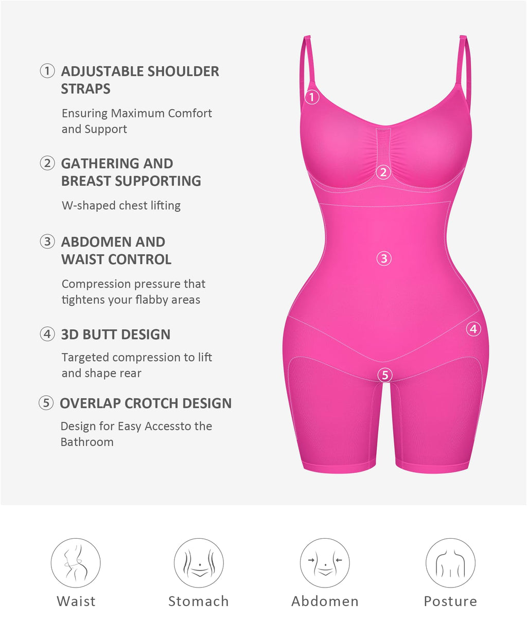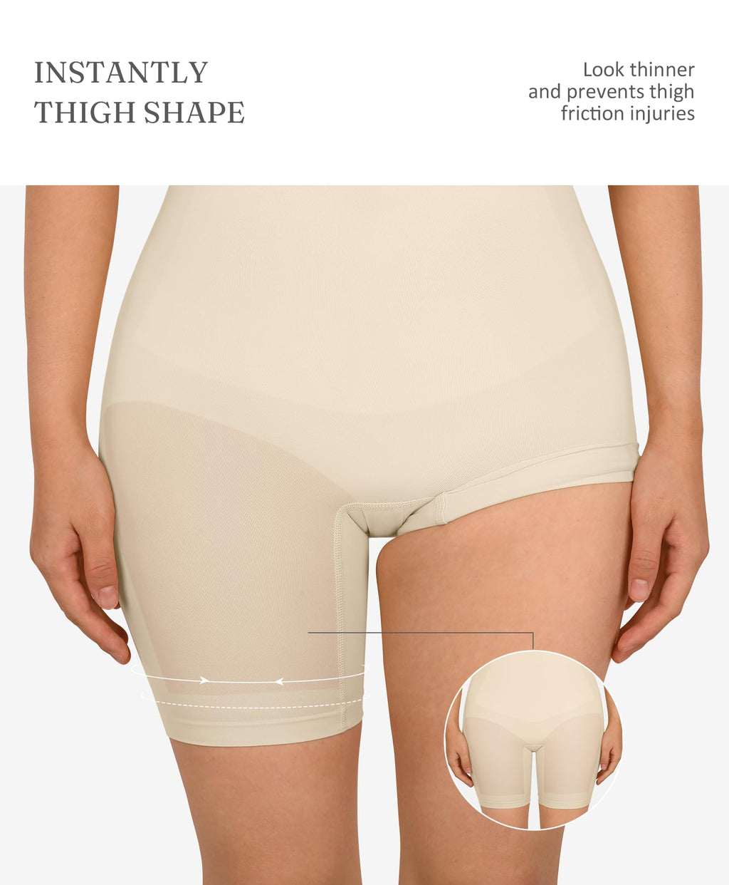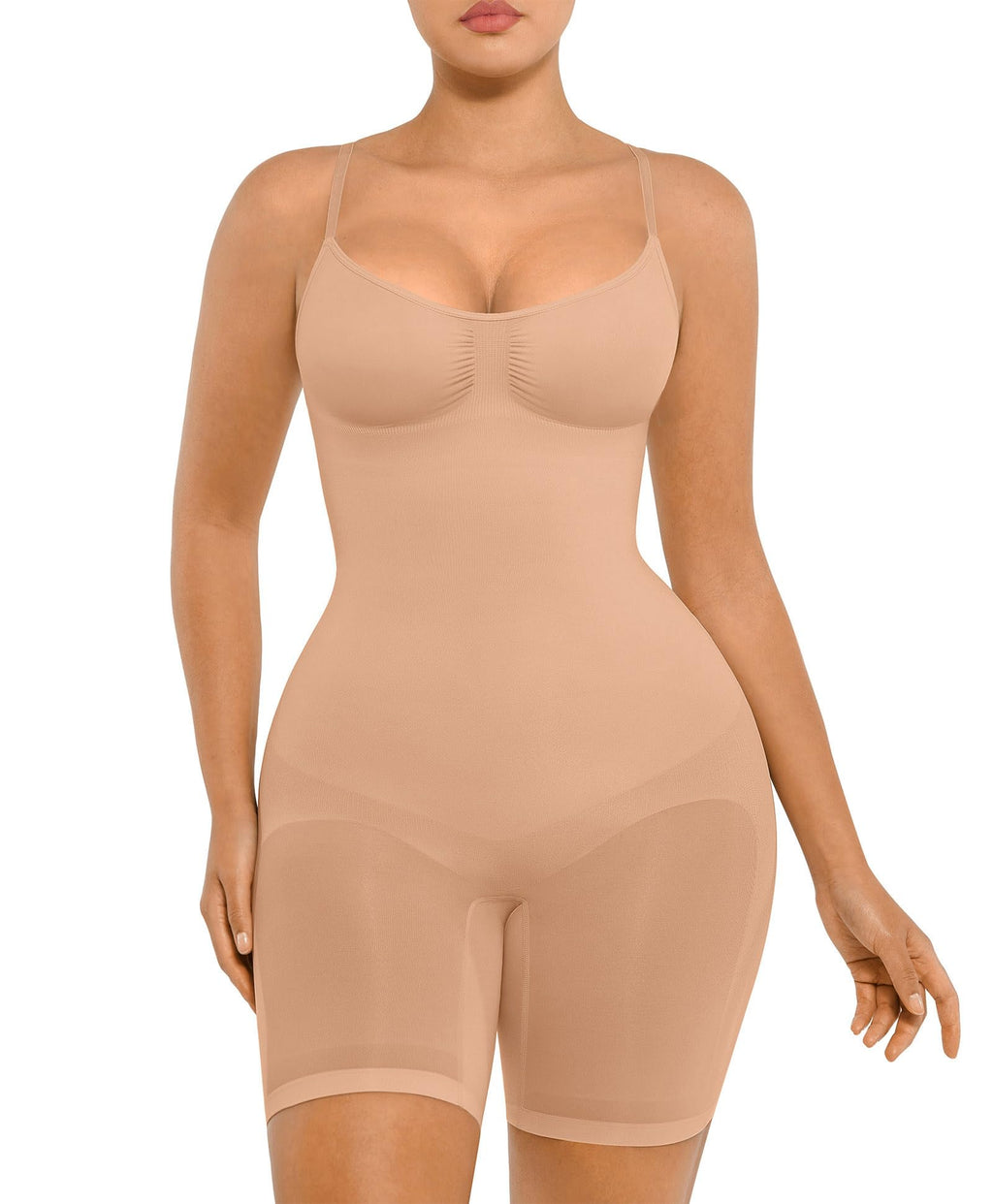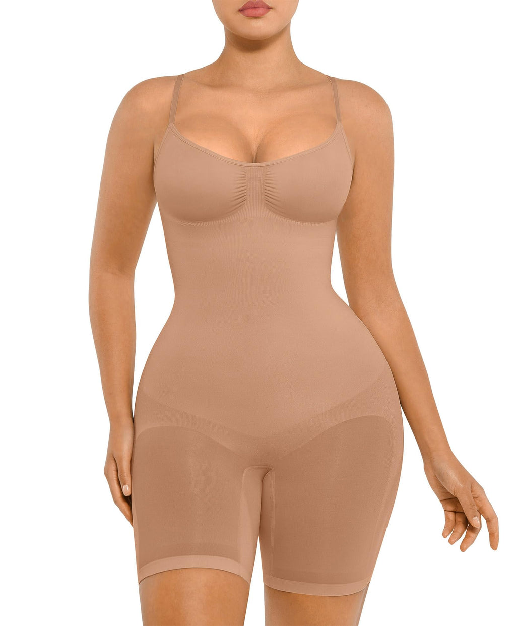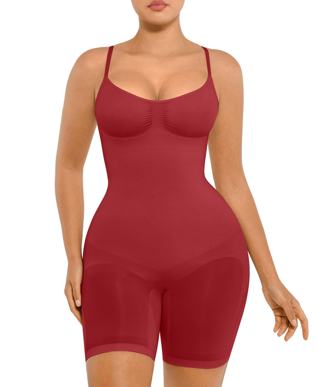 • Instant Body Shaping: It can support your back, and push your body up, making you look attractive. To prevent slipping, rolling, and bunching, there are double adjustable and non-removable shoulder straps. Ensuring no curling due to its mid-thigh length, this shapewear is comfortable to wear all day.