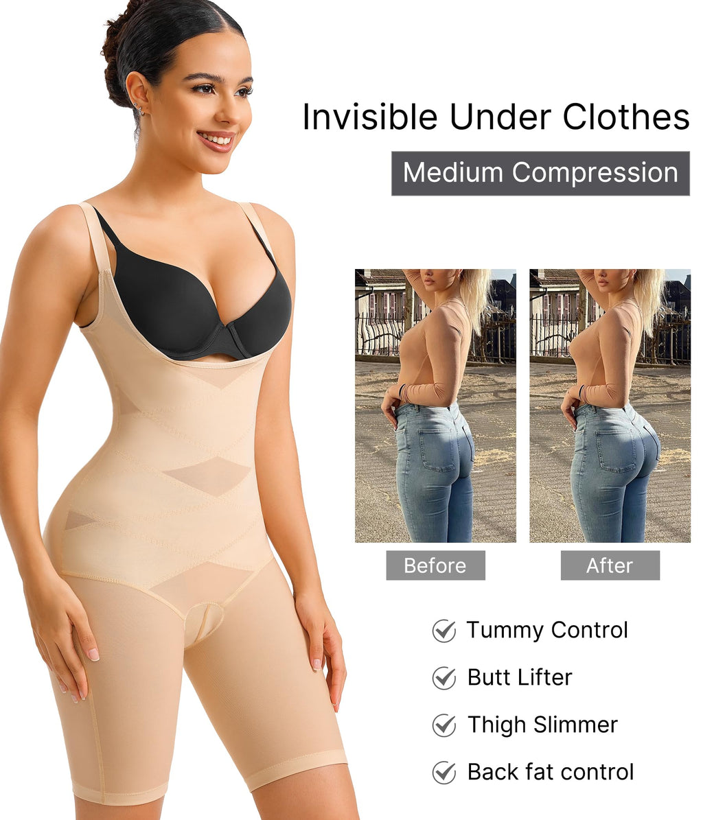 • X-CROSS Tummy control: Designed with a X-CROSS structure, this womens shapewear tummy control targets your midsection, delivering mid compression tummy control. Full body shaper for women works to sculpt your curves, enhancing your natural shape.